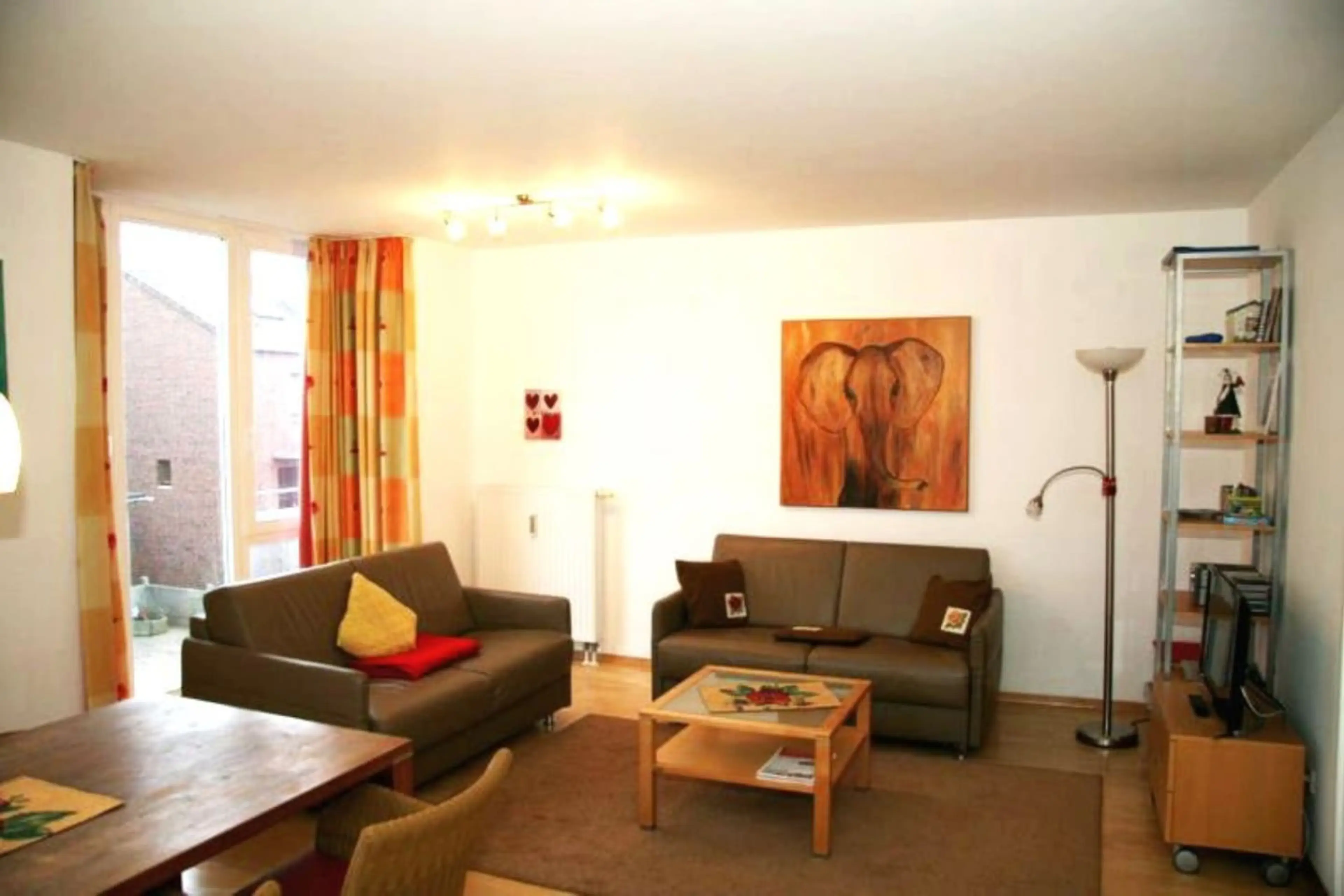 Die nach Süden ausgerichtete Wohnung im 1. Obergeschoss ist mit einem Aufzug erreichbar und verfügt über ein separates Schlafzimmer mit einem Doppelbett. Im Wohn-/Essraum befinden sich die komplett ausgestattete integrierte Küche sowie ein Sofa, welches zu einem zusätzlichen Bett für zwei weitere Pe...