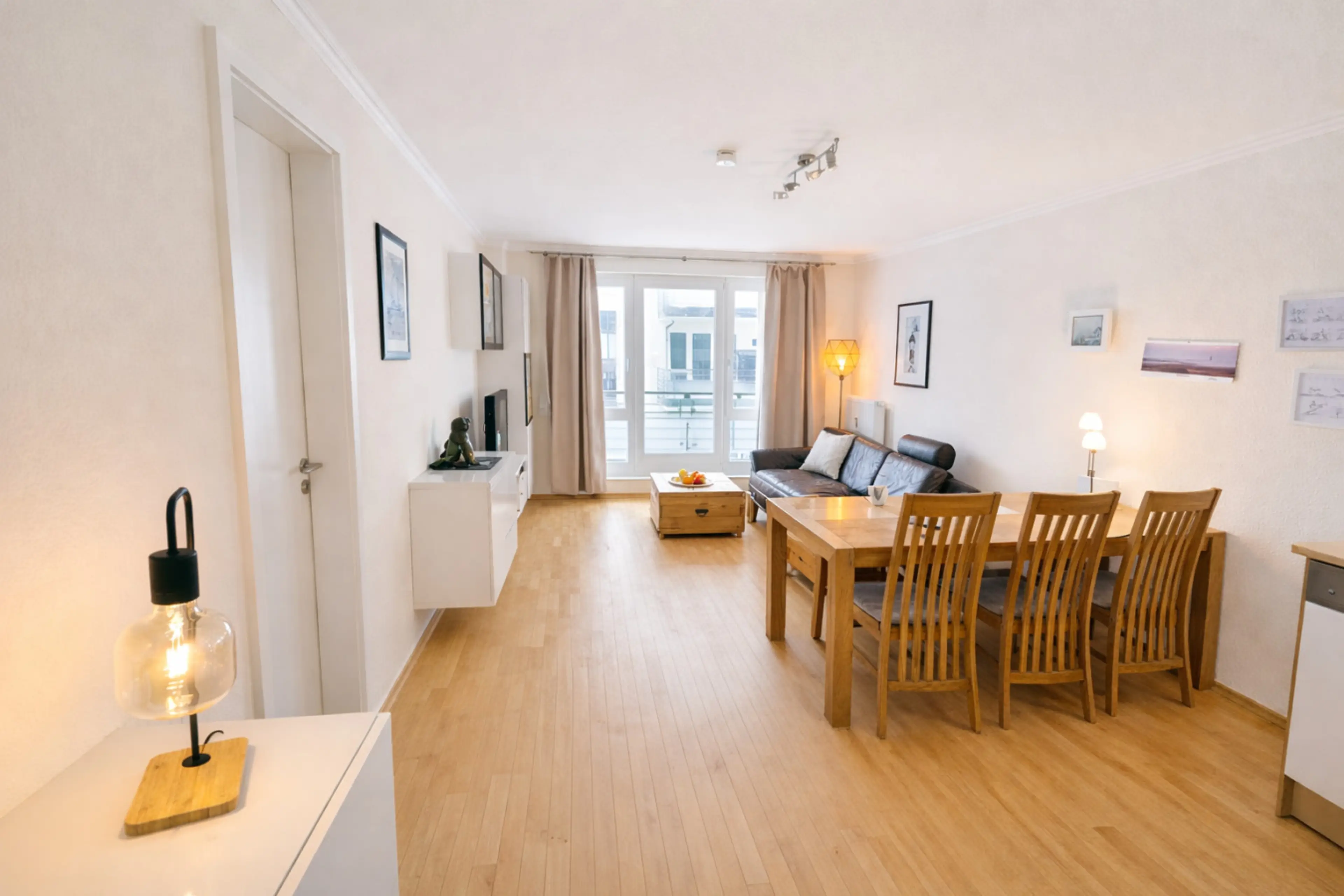 Modern eingerichtete Drei-Raum-Wohnung im 1. Obergeschoss. Sie verfügt über zwei separate Schlafzimmer und bietet Platz für vier Personen. Ein Schlafraum ist mit einem Doppelbett und der zweite mit einem Etagenbett sowie einem zusätzlichen Kinderbett (160 cm x 80 cm) ausgestattet. Die komfortable in...